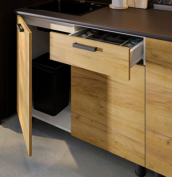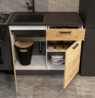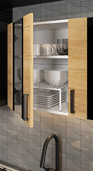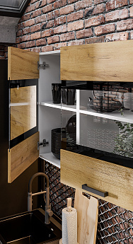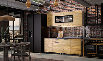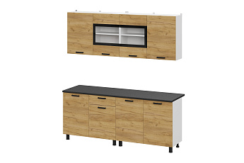 Кухонный гарнитур Абрау (2000) (Белый/Дуб золотой/Чёрный), FI