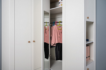 Шкаф Джастин угловой 13.229 (Белый PE шагрень/Дуб Белый exclusive OW D4430), Моби