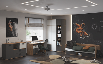 Антресольная секция Мали МЛ-17 (Белый/Дуб Вотан/Графит), Заречье