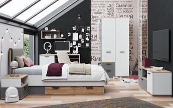 Тумба прикроватная Мали МЛ-4 (Белый/Дуб Вотан/Графит), Заречье