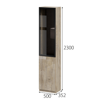 Шкаф Этна Ш 35*50 стеклянная дверь + гл.дверь(Дуб Эндгрейн/Эндгрей Лак), FI