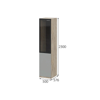 Шкаф Этна Ш 57*50 стеклянная дверь + гл.дверь (Дуб Эндгрейн/Софт Грей), FI