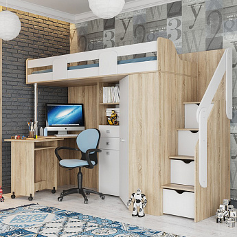 Кровать-чердак МИЙА (Дуб Сонома/Белый), Стиль