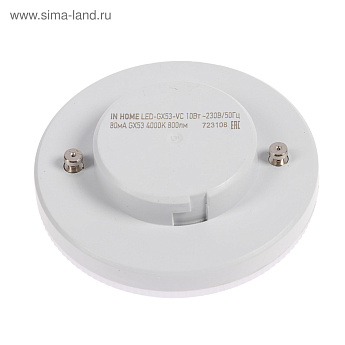 Лампа светодиодная IN HOME LED-GX53-VC, GX53, 10Вт, 230В, 4000К, 800Лм 4407598