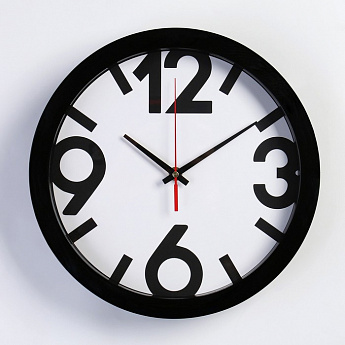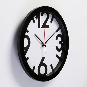Часы Классика черный обод/большие цифры d=28см микс/2436370