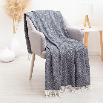 Плед Валенсия Parquet 140*200 бел/т.син. хлопок,пан,п/э/9347703