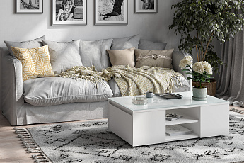 Стол журнальный со стеклом Герда (Одри) (Белый), FI