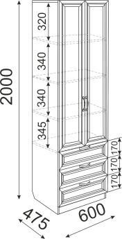 Пенал 600 (пн1) с зеркалом Энни (Графит серый), FI