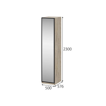 Шкаф Этна Ш 57*50 с зеркальной створкой (Дуб Эндгрейн), FI