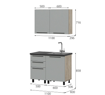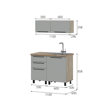 Кухонный гарнитур Этна Софт Грей, FI, Компоновка 1100 1