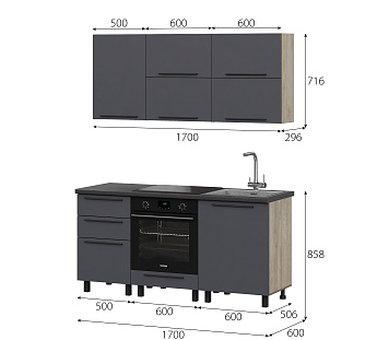 Кухонный гарнитур Этна Софт Графит, FI, Компоновка 1700 2