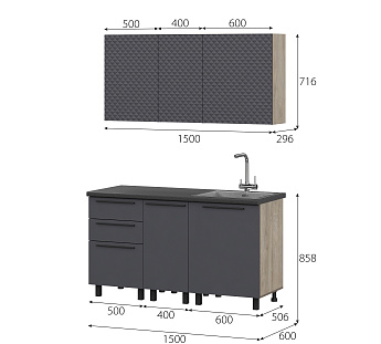 Кухонный гарнитур Этна Софт Графит, FI, Компоновка 1500 2