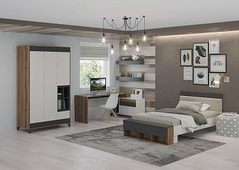 Гостиная БОХО НМ-001 (Дуб Крафт серый/Кашемир), Стиль