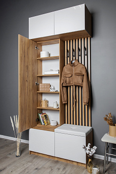 Вешалка 800 Апполия (Белый с тиснением "Древесные поры"/Белый Дуб), ТЭКС