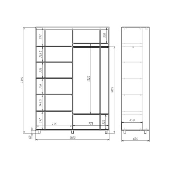 Шкаф-купе PRIME 160х60х230 (Дв-БлШ, (зерк., Дв), Ч), МАМА Дв-БлШ МАМА МК ООО