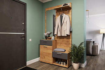 Тумба с вешалкой САФАРИ ТМ-003 (Дуб Крафт золотой/Графит), Стиль