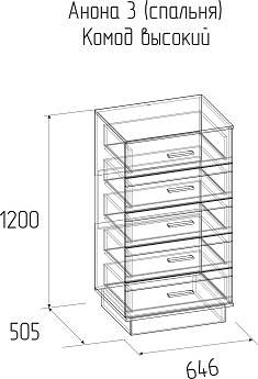 Комод Анона 3 высокий (Белый/Дуб Сонома), ГМФ
